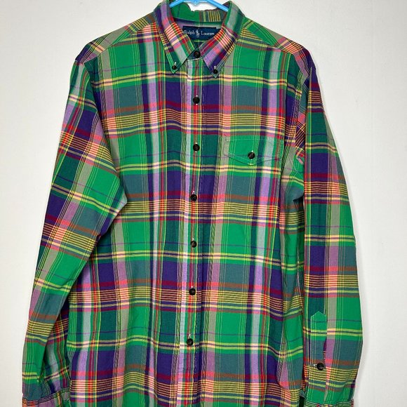 Ralph Lauren Button Down Shirt Men's L Green Colorful Plaid Preppy Casual