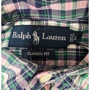 Ralph Lauren Button Down Shirt Mens Large Classic Fit Plaid Multicolor Blue Pink