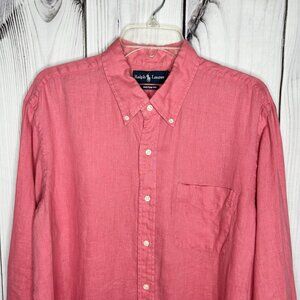 Ralph Lauren Button Down Shirt Mens XL 100% Linen Custom Fit Pink Long Sleeve