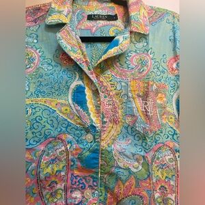 Ralph Lauren Button Down Shirt Woman’s Size Small Pastel Paisley Old Money