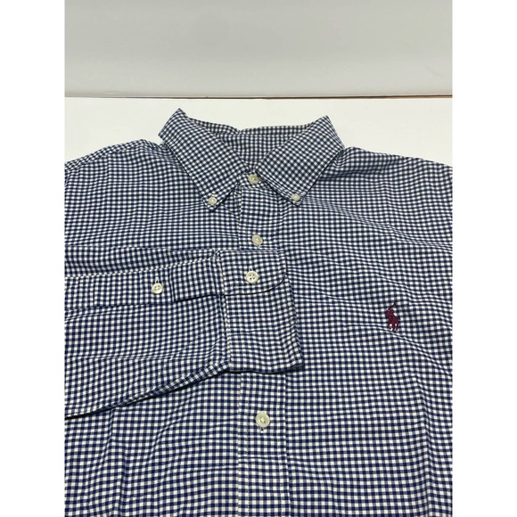 Ralph Lauren Button Up Long Sleeve Shirt Size Large White Blue