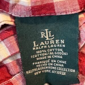 Lauren Ralph Lauren COLD SPRING Red Cream Gingham Check Plaid Flat Sheet Queen READ