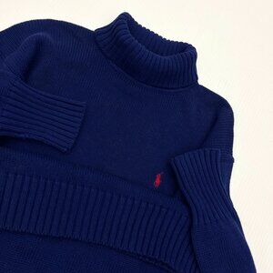 Ralph Lauren Cable Knit turtleneck Sweater Blue Mens M
