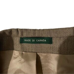 Ralph Lauren Made in Canada Beige Golden Brown 3-Button Silk (52%) Wool (48%) Blend 2 Square Flap Pockets Lapel Pocket 3 Interior Pockets Fully-Lined Suit Jacket Men’s Blazer Sport Coat Size 44L 44 Long. This jacket is preowned and in excellent condition.