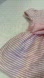 The dress is size 3 months. It is white & light pink, and a raspberry color pink. The bloomers are by Carter’s. They are size 3 months. They match the color of the bow. They are a tiny bit more peach than the bow, but very close. The dress and bloomers are like new. No rips. No stains. No holes. Buttons on the dress are well attached. Interior is in excellent condition. See numerous pictures posted for your close-up views and measurements. From a smoke-free home. Super cute. My pictures are not doing it justice.