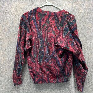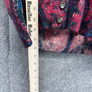 Ralph Lauren Cardigan Sweater Women Small Red Corduroy Paisley Lambswool 90s