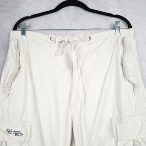 Ralph Lauren Cargo Pants Mens 33 White Drawstring Paratrooper Utility Baggy