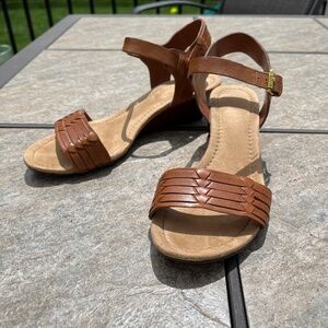 Ralph Lauren Carmel Ankle Strap Wedge Sandals. Size 6.5B. Ankle buckle adjustable strap. Some wear and small marks. See photos.