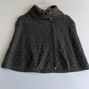 Ralph Lauren Black Label Charcoal Cashmere Capelet Leather Accent Luxury Recency