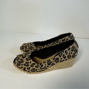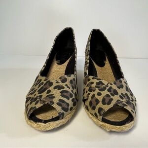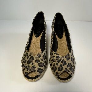 Ralph Lauren Cecilia Espadrille Wedge Sandals Women 8.5 B Cheetah Fabric Slip On