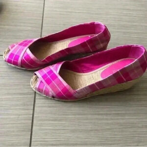 Ralph Lauren Cecilia Pink Plaid Open Toe Wedge