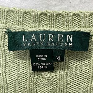 Ralph Lauren Celery Green Cable Knit Crewneck Sweater Size XL 100% Cotton