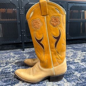 Ralph Lauren Celine Tan Floral Cowboy Boots Leather Vintage Size 9