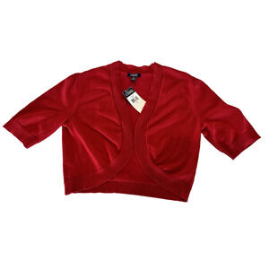 Ralph Lauren Chaps Cardigan Women SZ L Open NEW 3/4 Sleeve Yacht Red Cropped NWT