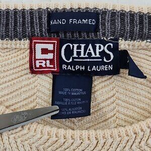 This Ralph Lauren Chaps Hand Framed Sweater in Men's Size XL is a stylish and comfortable option for casual wear during the winter, fall, and spring seasons. Made from cotton with a herringbone pattern and hand-framed knit style, this pullover sweater features a crew neck and long sleeves.