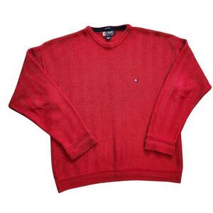 Ralph Lauren Chaps Hand framed Knit sweater Cotton Men's XL Red Crest logo