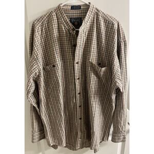 Ralph Lauren Chaps Large Men's Plaid Long Sleeve Button Up Double Pocket Tan