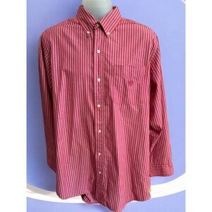 Ralph Lauren Chaps Men Red Striped Long Sleeved Collared Button Down Shirt Large