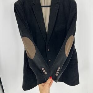 Ralph Lauren Chaps Mens 48R Corduroy Sport Coat Black Elbow Patch Jacket Preppy