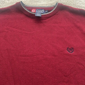 Ralph Lauren Chaps Men’s Large Burgundy 100% Cotton Crew Neck Navy / Gray NWOT