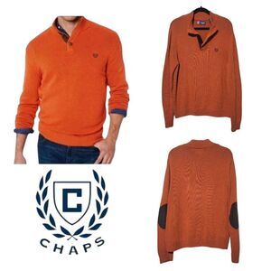 Ralph Lauren Chaps Mens M Henley Pullover Knit Sweater Academia- Dad Elbow Patch