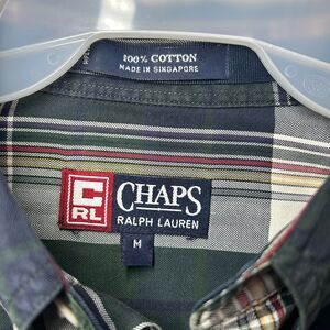Ralph Lauren Chaps Shirt XL Easy Care Button Up Long Sleeve Green Plaid Cotton