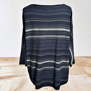 Ralph Lauren Chaps Sz 1X Womens Sweater Navy Tribal Stripe 3/4 Sleeve Aztec Boho