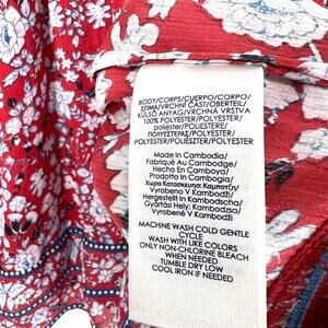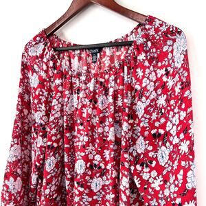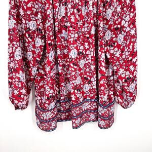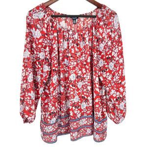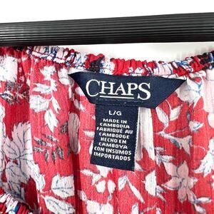Ralph Lauren Chaps Womens Sz Large Red Lightweight Floral Blouse Shirt Top Beach