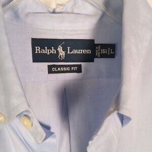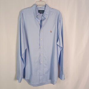 Ralph Lauren Classic Fit Blue Button Front Shirt 100% Cotton Size 16.5 L
