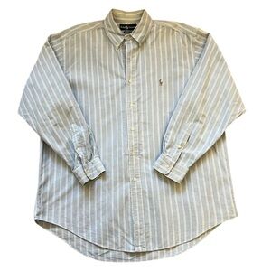 Ralph Lauren Classic Fit Button Down Oxford Shirt Blue Striped Cotton 17-34/35