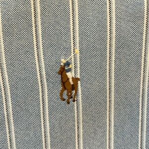 Ralph Lauren Button Down Oxford Long Sleeve Shirt. Blue, white, black stripe. 100% cotton. Crisp, substantial fabric.
