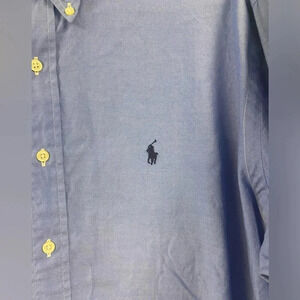 Ralph Lauren Classic Fit Cotton Solid Blue Long Sleeve Button Down Size 16 1/2