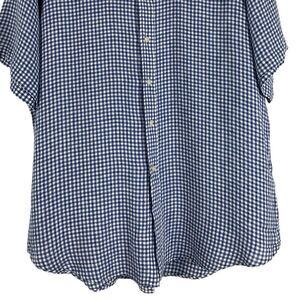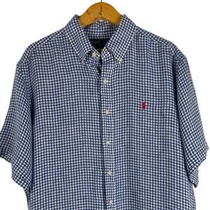 Ralph Lauren Classic Fit Linen Blue White Gingham Short Sleeve Button Down Shirt Size XL