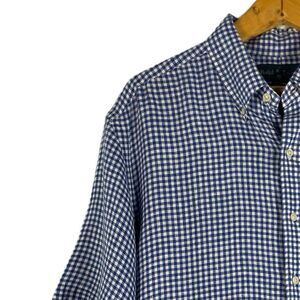Ralph Lauren Classic Fit Linen Blue White Gingham Button Down Shirt Size XL