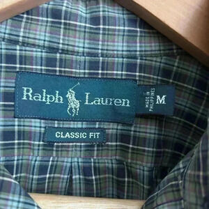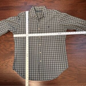 Great condition. Ralph Lauren men’s classic fit long sleeve button down plaid shirt. Features signature polo player in navy on left chest.