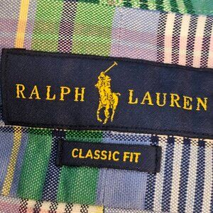 Ralph Lauren Classic Fit Men Plaid Shirt Long Sleeve Collared Blue Green Pink XL