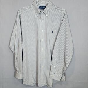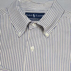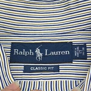 Ralph Lauren Classic Fit Men's Blue & Yellow Striped Button Up Shirt SZ 17 34/35