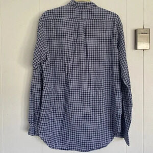 Ralph Lauren mens blue and white checkered button-down shirt features a classic fit, with long sleeves and a button down collar. 100% cotton. Size large