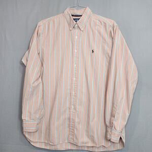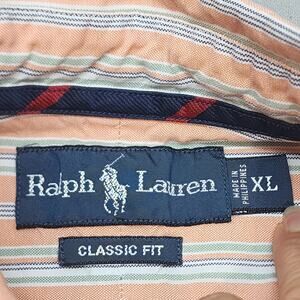 Ralph Lauren Classic Fit Men's Peach Stripped Button Up Shirt Sz XL