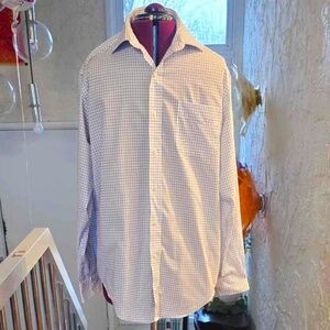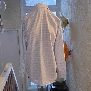 Ralph Lauren Classic Fit Non-Iron Button Down Shirt. White with Navy Blue and Light Blue Checkers.