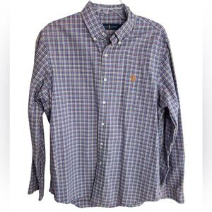 Ralph Lauren Classic Fit Oxford Shirt Plaid Mens Large Preppy Polo Pony Logo. Easy Care