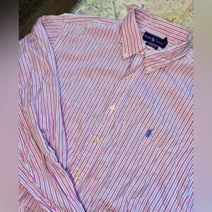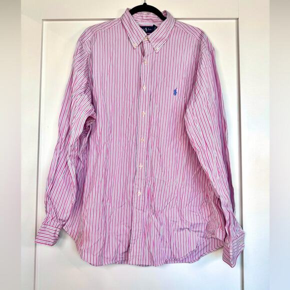 Ralph Lauren Classic Fit Pink Button Down Shirt Size XL 17 1/2 in excellent pre owned condition