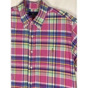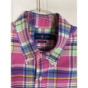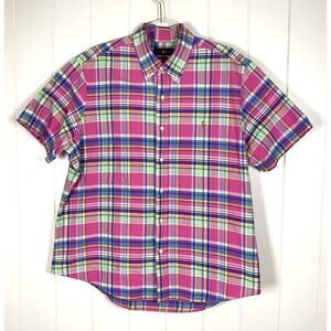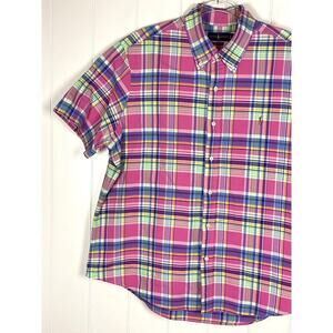 Ralph Lauren Classic Fit Pink/Purple Plaid Short Sleeve Buttondown Shirt Size XL