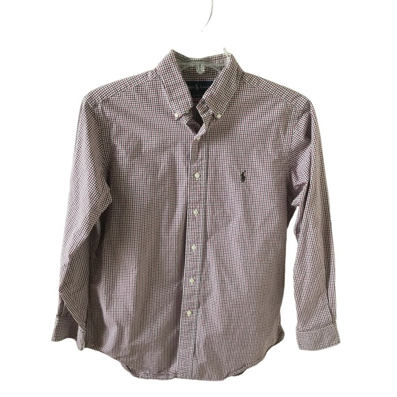 Get a timeless look with this classic Ralph Lauren button-up shirt in a size 15.5. The multicolor check pattern adds a touch of style and the long sleeves provide warmth on cooler days. The collared neckline and button-down collar style give the shirt a polished appearance. Made of cotton material, this shirt is comfortable to wear all day long and layers well with a sweater for cooler temps.