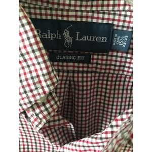 Ralph Lauren Classic Fit Red White Black Plaid L/S Shirt Sz 15 1/2 32/33