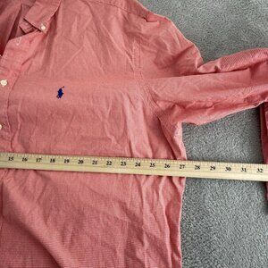 This Ralph Lauren men's shirt offers timeless style with its classic fit and checkered red and white pattern.