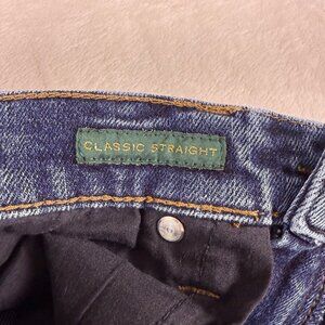 These Ralph Lauren classic straight jeans come in a dark wash with a timeless mid-rise fit. The straight leg cut gives them a versatile silhouette that can be styled with everything from casual tees to blouses and blazers. Designed in a women's size 4, they feature traditional five-pocket styling, button and zip closure, and subtle fading that adds a vintage-inspired look. A staple denim piece that works year-round, these jeans balance structure and comfort while keeping a clean, classic style that never goes out of fashion.