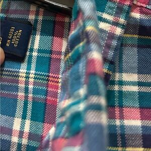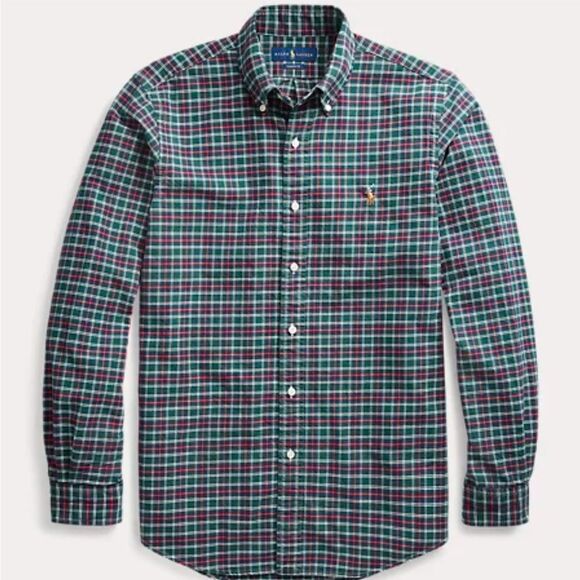 Ralph Lauren Classic Fit Plaid Cotton Red Green Multicolor Oxford Shirt Medium