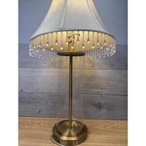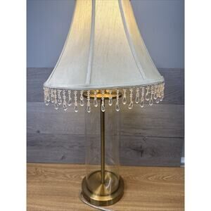 Ralph Lauren Clear Glass and Chrome Cylinder Tube Table Lamp 28” Tall