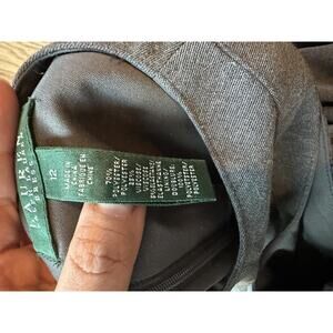 Elevate your style with this stunning Ralph Lauren cocktail dress in a beautiful deep gray color. The dress features a flattering boat neck and sleeveless design, with a pleated accent that adds a touch of elegance. The dress is belted for a perfect fit and has a zip closure for added convenience.